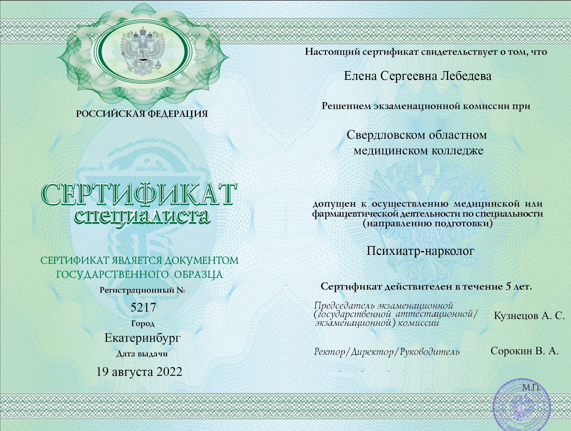 Елена Сергеевна Лебедева врач нарколог клиники доктора Стукаловой в Ижевске